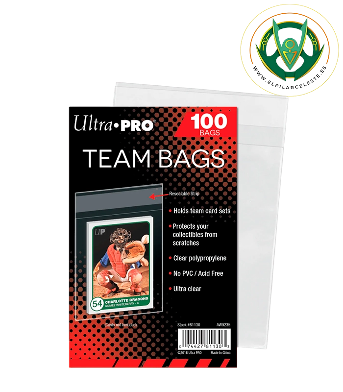 Perfectas para coleccionistas, vendedores y archivadores, las Ultra PRO Team Bags son la opción profesional para mantener tus cartas en condiciones impecables.