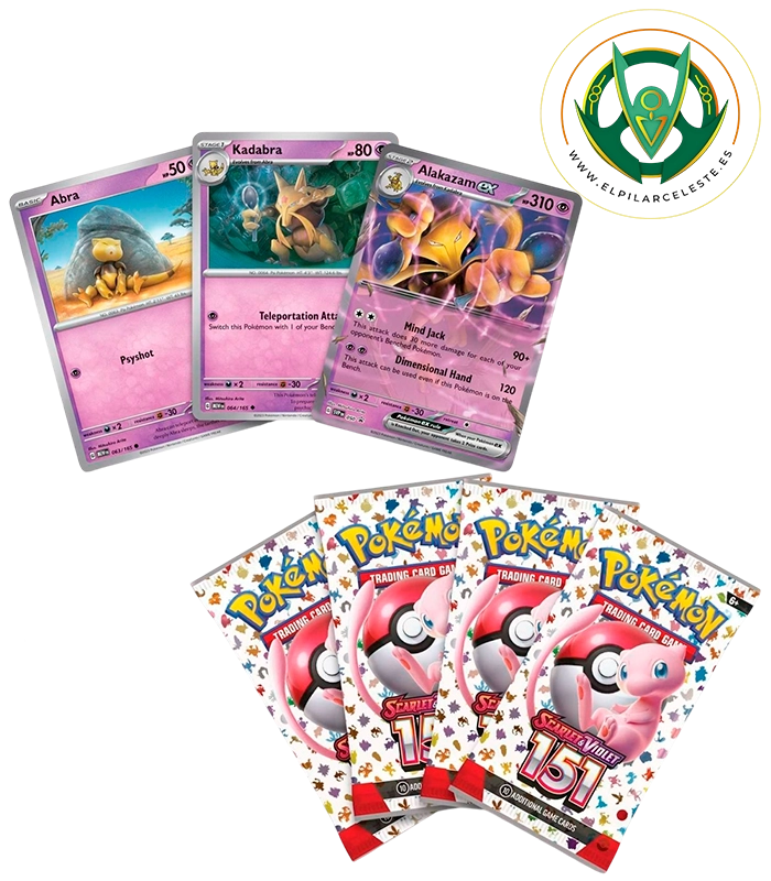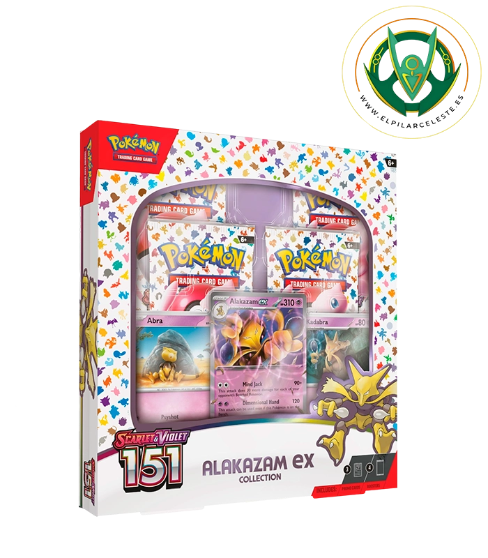 Añade un toque de poder psíquico y nostalgia a tu colección con la Colección Alakazam ex, parte de la expansión Pokémon 151, una serie que celebra a los Pokémon originales con un estilo moderno y espectacular.