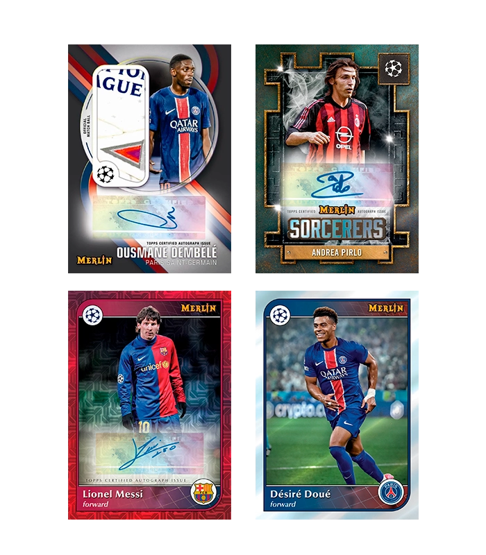 Topps Merlin UEFA Club Competitions 2024/25 reúne 200 cartas de estrellas, promesas y leyendas europeas, con inserts exclusivos, autógrafos y diseños místicos únicos.