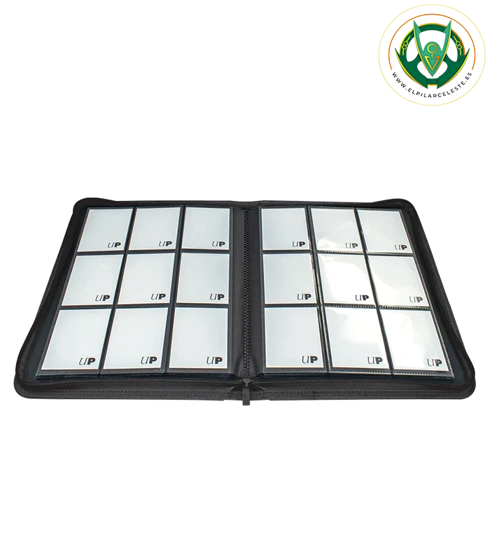 La carpeta de Ultra·PRO tiene capacidad de 360 cartas, 9 bolsillos cada página, tanto parte delantera como trasera con un total de 18 cartas por página.