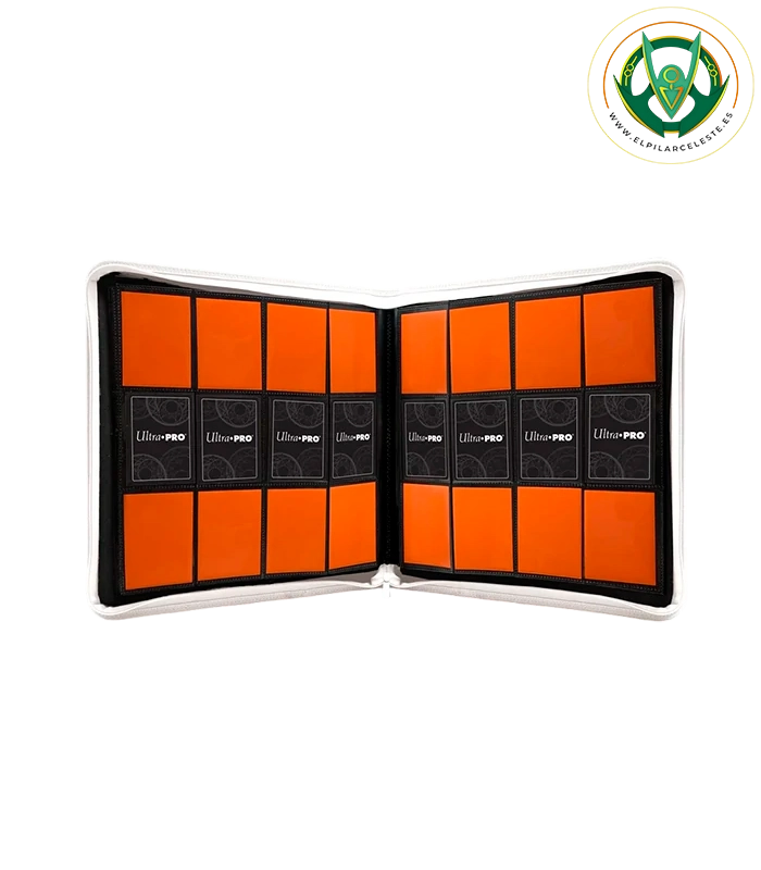 Carpeta (binder) acolchada Ultra·PRO para 480 cartas, con bolsillos de carga lateral y cierre con cremallera. Máxima protección y capacidad panorámica.