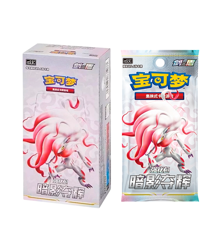 La Colección Shadow of Glory en chino es una booster box exclusiva de Pokémon TCG que ofrece a los coleccionistas una experiencia única y diferente. A diferencia de las cajas estándar de colecciones básicas, que contienen 30 sobres, esta edición especial incluye 20 sobres de 6 cartas cada uno, diseñada para ofrecer cartas raras y exclusivas en un formato más selecto.
