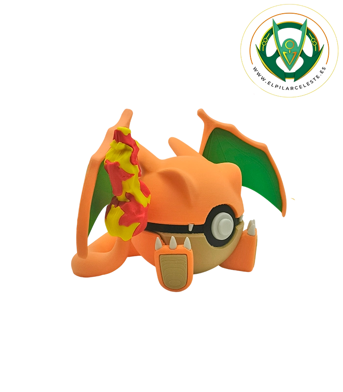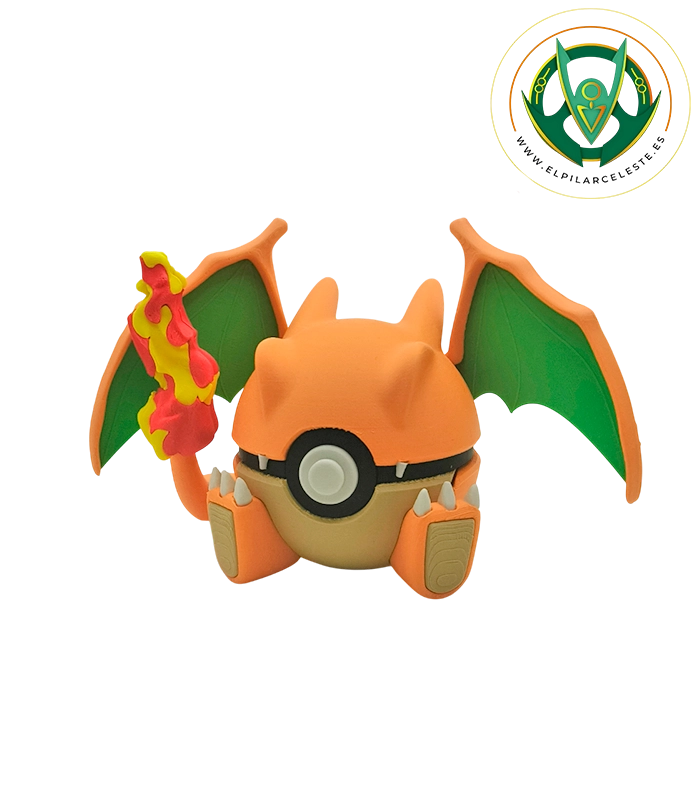 Poke Ball inspirada en Charizard, el Pokémon de tipo Fuego/Volador de la 1ª Generación.