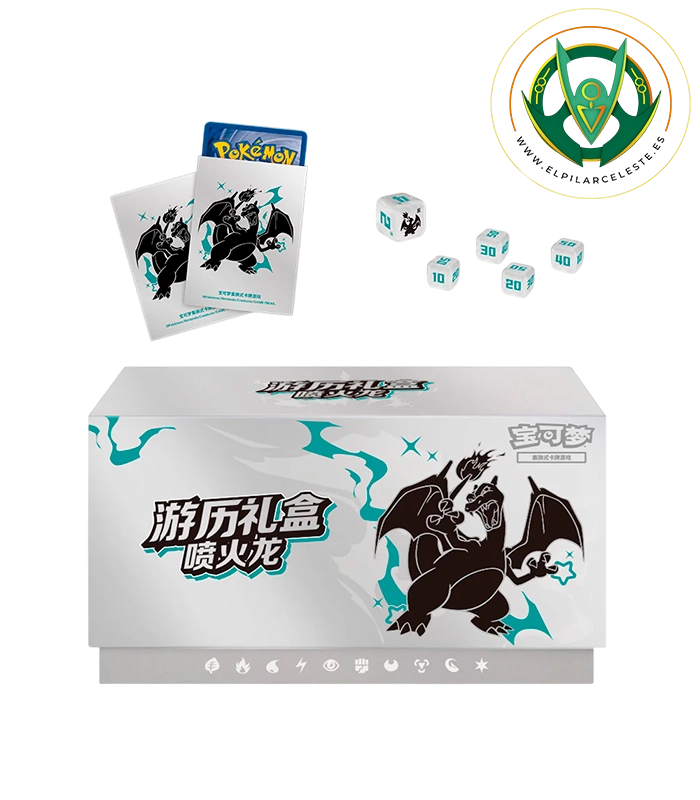 La Pokémon Travel Gift Box en chino simplificado – Charizard es uno de los cuatro sets temáticos oficiales de la serie Viaje lanzada por Pokémon China. Esta colección especial rinde homenaje a Pokémon icónicos en un formato pensado para el coleccionismo y la exhibición.