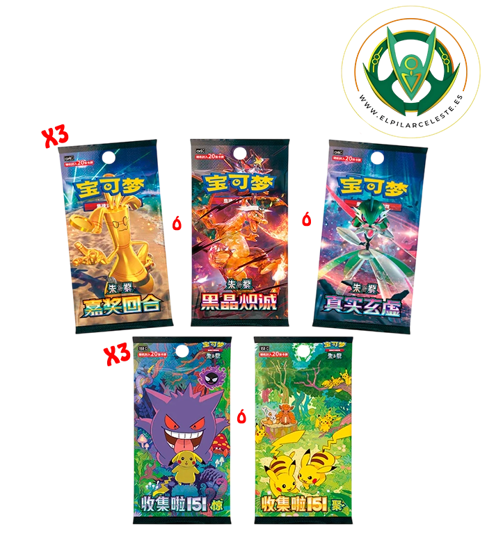 - 2 sobres Jumbo de 20 cartas (1 posibilidad de 2 colecciones de 151)
