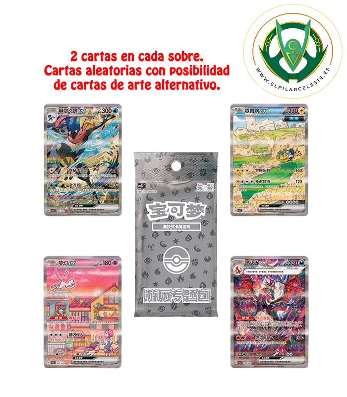 - 6 sobres de 2 cartas exclusivos (probabilidad de cartas de arte alternativo)