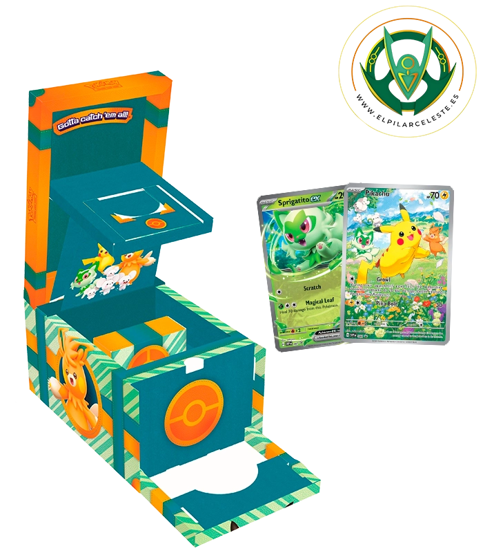 Con su encantador diseño y su contenido repleto de artículos coleccionables, el Cofre Aventuras en Paldea con muñeco de Pikachu es una pieza imprescindible para cualquier fan del universo Pokémon.