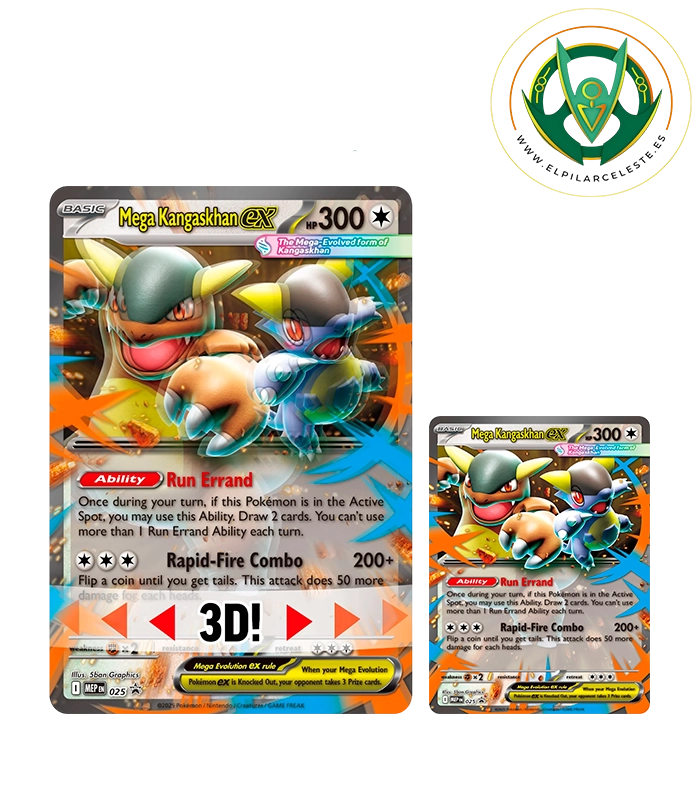 Esta poderosa edición presenta a Mega Kangaskhan ex, una versión mejorada que combina la energía del Pokémon y su cría en una dupla imparable. Gracias a sus ataques Recado y Combo Ráfaga, podrás robar más cartas y lanzar monedas para infligir un daño devastador a tus oponentes.