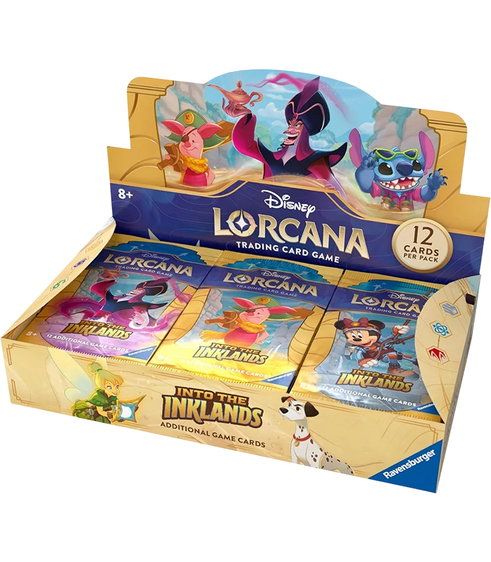 ¡Embárcate en una nueva aventura mágica con la tercera expansión de Disney Lorcana: Into the Inklands! Esta emocionante caja contiene 24 sobres de refuerzo, ideales para coleccionistas y jugadores que buscan enriquecer sus mazos mientras descubren nuevas cartas. Disfruta de la alegría de abrir cada sobre y la sorpresa de lo que encontrarás en su interior.