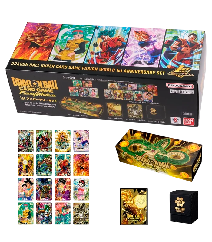 Celebra a lo grande el primer aniversario de Dragon Ball Fusion World con esta espectacular 1st Anniversary Box, una edición especial diseñada para coleccionistas y jugadores que quieren llevar su experiencia al siguiente nivel.
