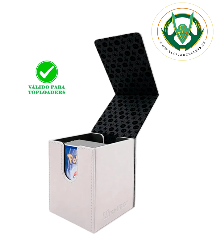La caja tiene capacidad para hasta 100 cartas tamaño estándar con doble funda Ultra PRO Deck Protector®, ofreciendo máxima protección tanto para jugadores competitivos como para coleccionistas.