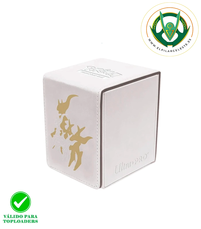 Elite Series Arceus Alcove Flip Box para Pokémon con cierre magnético, acabado en polipiel con foil y capacidad para 100 cartas con doble funda. ¡Protege tu baraja con estilo!