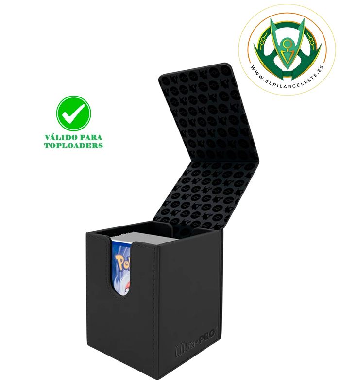 La caja tiene capacidad para hasta 100 cartas tamaño estándar con doble funda Ultra PRO Deck Protector®, ofreciendo máxima protección tanto para jugadores competitivos como para coleccionistas.