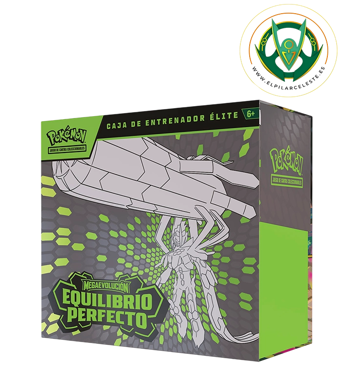 Consigue la Caja de Entrenador Élite de Megaevolución-Equilibrio Perfecto de JCC Pokémon, la nueva expansión lanzada en el 1.º trimestre de 2026. Esta ETB incluye 9 sobres de mejora, carta holográfica promo de Tyrunt con ilustración expandida, 65 fundas para cartas, 40 Energías, dados oficiales, guía del jugador y caja de coleccionista con divisores. Encuentra cartas como Mega-Zygarde ex, Mega-Clefable ex y Mega-Starmie ex en una de las colecciones más esperadas del año. Producto original en español, ideal para jugadores competitivos y coleccionistas.