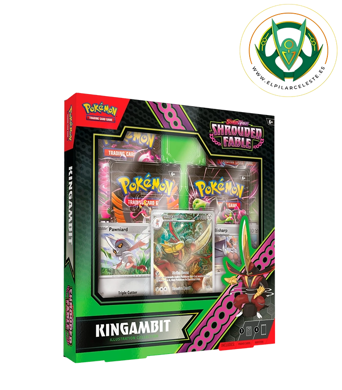 La Colección Ilustración Kingambit de Escarlata y Púrpura-Fábula Sombría de JCC Pokémon pone en tu equipo al poderoso Kingambit, el Pokémon Gran Espada, con una carta de promoción estilo Rara Ilustración y diseño expandido. Además, incluye Pawniard y Bisharp en forma de cartas holográficas y cuatro paquetes de mejora de la expansión Escarlata y Púrpura-Fábula Sombría para ampliar tu colección y descubrir cartas adicionales. La colección también incluye una carta con código para jugar en JCC Pokémon Live, ofreciendo valor tanto para el juego físico como digital. Perfecta para coleccionistas y jugadores que buscan estrategia, exclusividad y estilo en sus partidas.