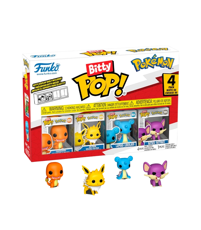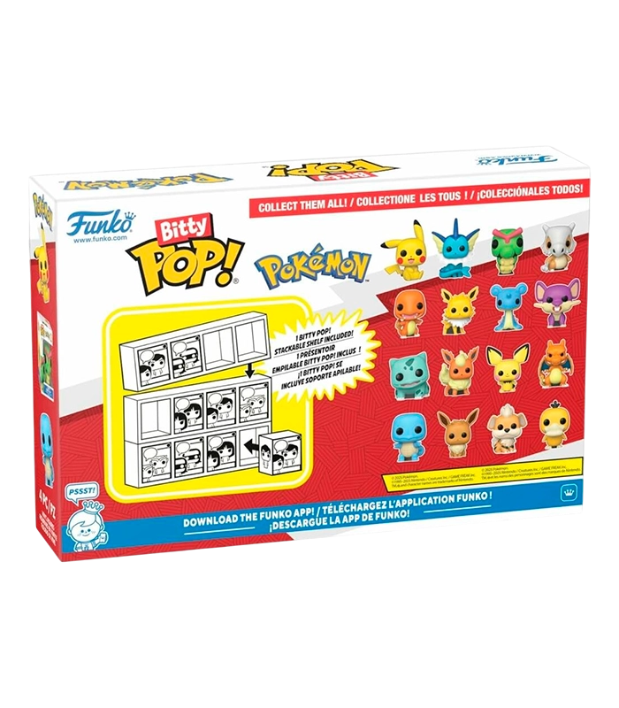 Con personajes icónicos como Pikachu, Bulbasaur, Charmander, Squirtle, Eevee, Vaporeon, Jolteon, Flareon, Charizard y muchos más, los Bitty Pop son el regalo perfecto para fans, coleccionistas y amantes del mundo Pokémon.