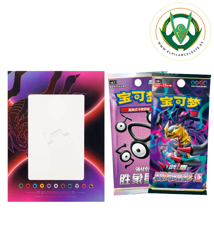 1 sobre con 6 cartas Pokémon en chino, con ilustraciones únicas y exclusivas de esta edición.