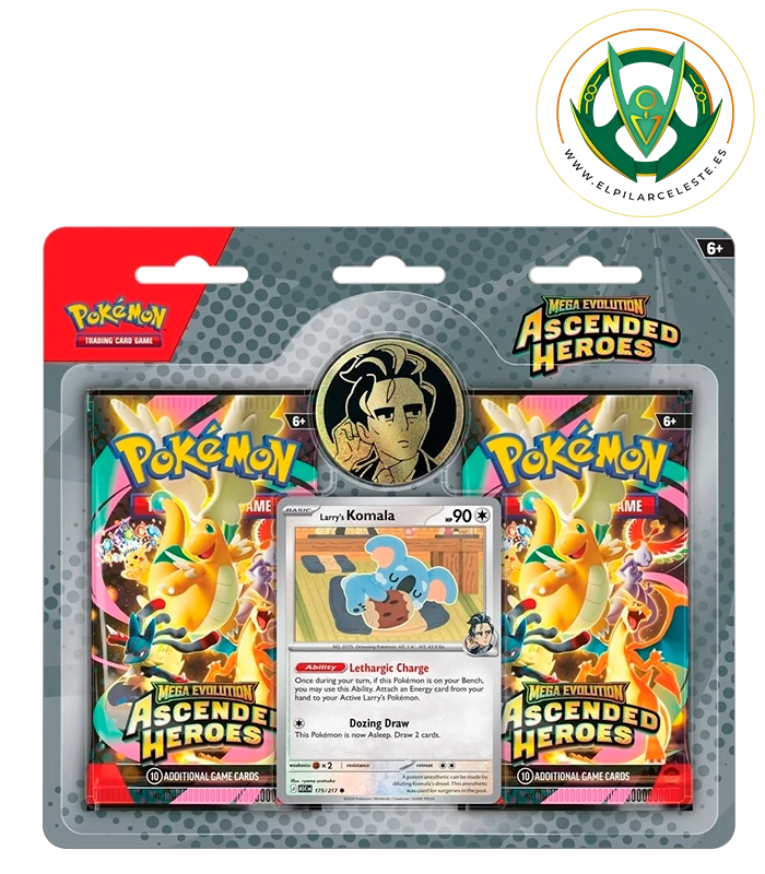 Cada caja incluye una carta promocional exclusiva, a elegir entre Tangela de Erika o Komala de Laureano, acompañada de una moneda del Líder de Gimnasio correspondiente y dos sobres de mejora de la expansión Megaevolución – Héroes Ascendentes. Ideal para ampliar tu colección, mejorar tus barajas o disfrutar de un producto especial dedicado a personajes emblemáticos del JCC Pokémon.