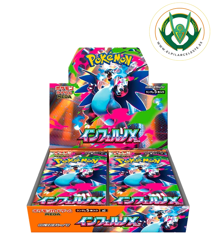 Colección Pokémon Inferno X en versión japonesa, con cartas potentes de fuego y sobres sellados ideales para coleccionistas y jugadores.