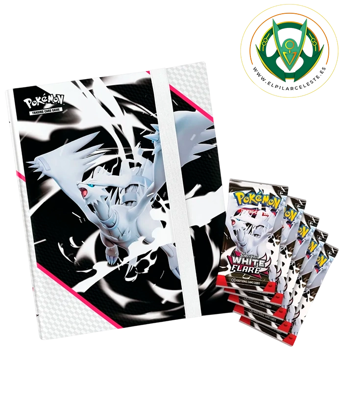 Consigue la Caja de Álbum Llama Blanca de Pokémon: álbum exclusivo para proteger y organizar tus cartas + 5 sobres de la expansión.