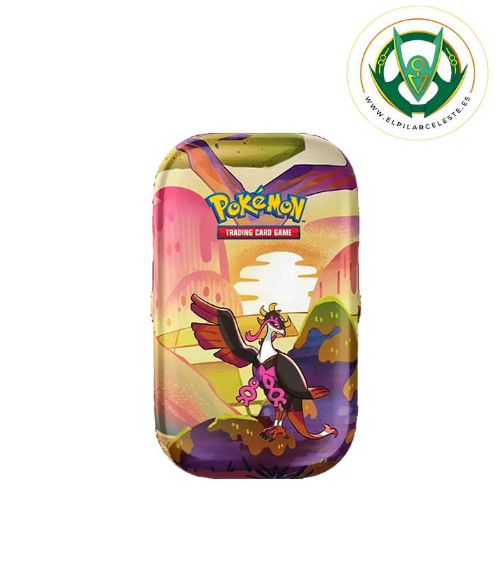 Minilata Escarlata y Púrpura – Fábula Sombría de JCC Pokémon con 2 sobres, carta ilustrada y hoja de pegatinas. Colecciónalas todas y une las ilustraciones.