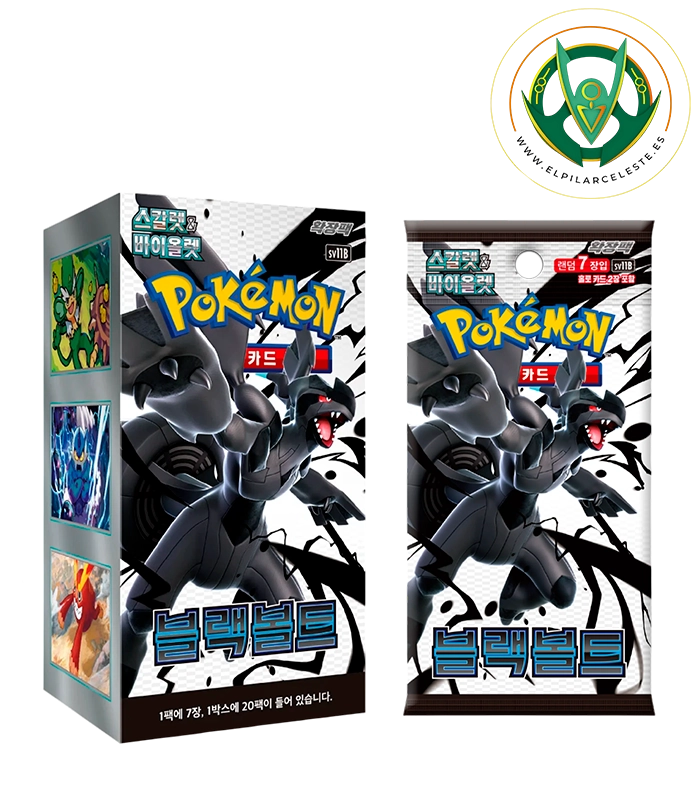 Colección Pokémon Black Bolt en versión coreana, con sobres sellados y cartas exclusivas ideales para coleccionistas y jugadores.