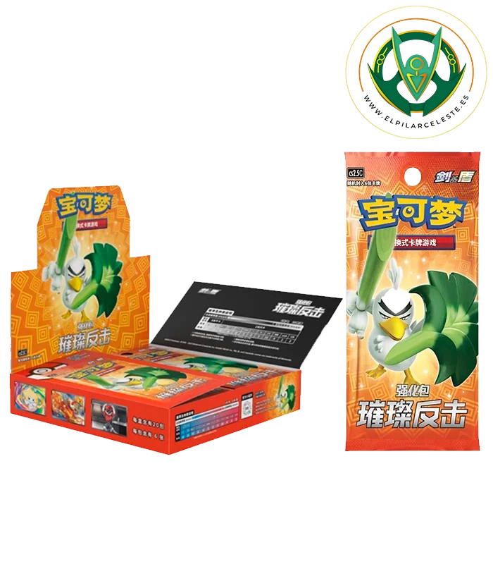 La colección Brilliant Counterattack en chino es una booster box exclusiva de Pokémon TCG que destaca por su rareza y formato especial. A diferencia de las cajas estándar, esta colección se presenta en un formato de 20 sobres de 6 cartas cada uno, lo que la convierte en un producto único dentro del mercado del TCG.