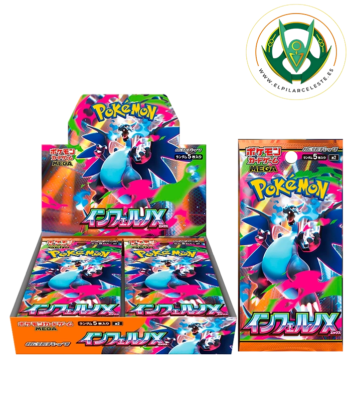 Colección Pokémon Inferno X en versión japonesa, con cartas potentes de fuego y sobres sellados ideales para coleccionistas y jugadores.