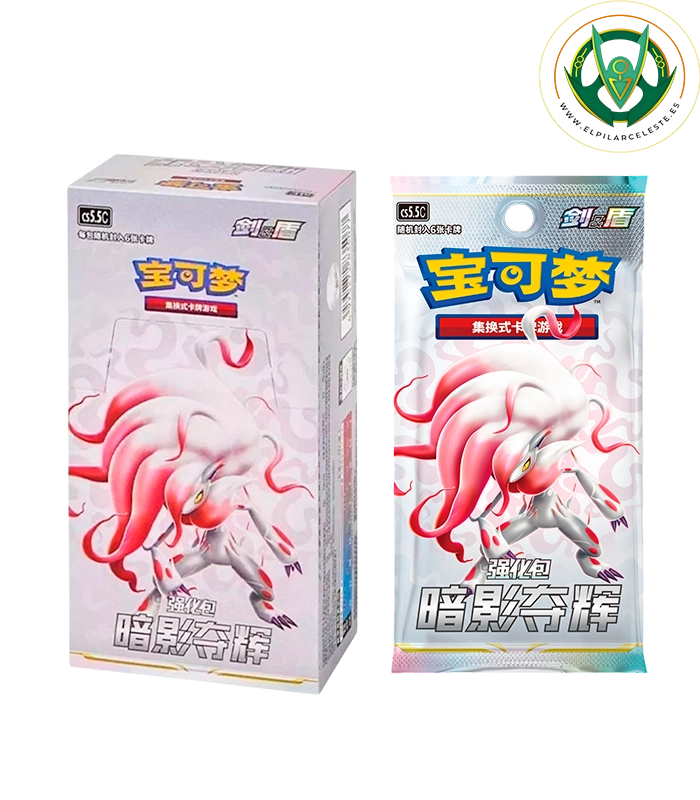 La Colección Shadow of Glory en chino es una booster box exclusiva de Pokémon TCG que ofrece a los coleccionistas una experiencia única y diferente. A diferencia de las cajas estándar de colecciones básicas, que contienen 30 sobres, esta edición especial incluye 20 sobres de 6 cartas cada uno, diseñada para ofrecer cartas raras y exclusivas en un formato más selecto.