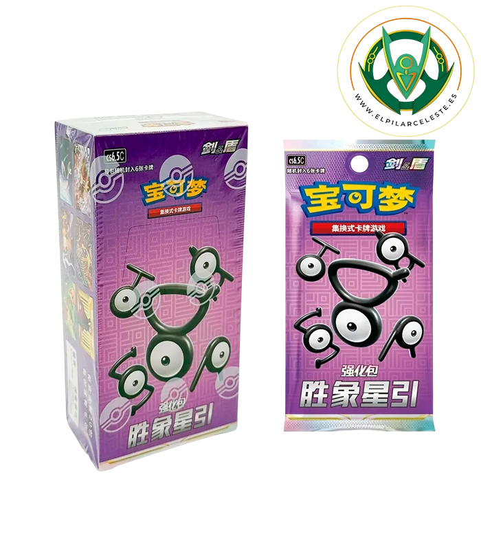 La Colección Victory Stars en chino es una booster box exclusiva de Pokémon TCG que ofrece a los coleccionistas una experiencia única y diferente. A diferencia de las cajas estándar de colecciones básicas, que contienen 30 sobres, esta edición especial incluye 20 sobres de 6 cartas cada uno, diseñada para ofrecer cartas raras y exclusivas en un formato más selecto.