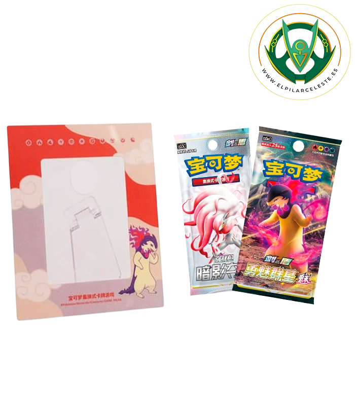 • 1 sobre con 6 cartas Pokémon en chino, con ilustraciones únicas y exclusivas de esta edición.