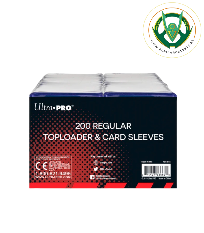 Pack Ultra PRO con 200 toploaders y 200 fundas soft penny sleeves. Protección rígida y sin ácidos para cartas coleccionables estándar.